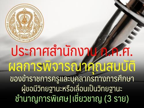 ประกาศสำนักงาน ก.ค.ศ. เรื่อง ผลการพิจารณาคุณสมบัติของข้าราชการครูและบุคลากรทางการศึกษาผู้ขอมีวิทยฐานะหรือเลื่อนเป็นวิทยฐานะชำนาญการพิเศษ|เชี่ยวชาญ