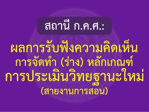 สถานี ก.ค.ศ.: ผลการรับฟังความคิดเห็นการจัดทำ (ร่าง) หลักเกณฑ์การประเมินวิทยฐานะใหม่ (สายงานการสอน) อ่านต่อคลิก[5 มิ.ย. 2560](อ่าน 11,895 ครั้ง) (0.51%-314 ผู้โหวต) |
