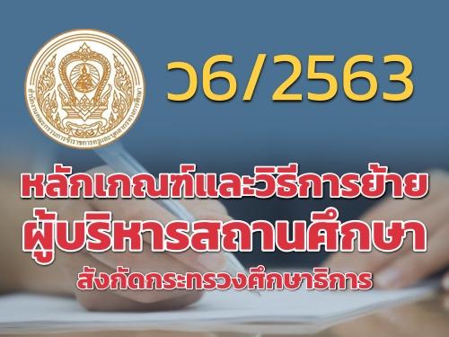 ว6/2563 หลักเกณฑ์และวิธีการย้ายผู้บริหารสถานศึกษา สังกัดกระทรวงศึกษาธิการ