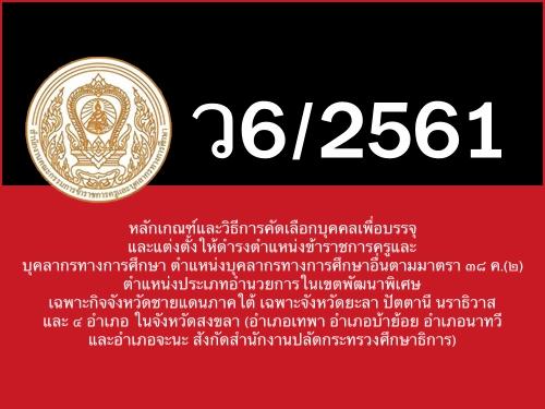 ว6/2561หลักเกณฑ์และวิธีการคัดเลือกบุคคลเพื่อบรรจุและแต่งตั้งให้ดำรงตำแหน่งข้าราชการครูและบุคลากรทางการศึกษา ตำแหน่งบุคลากรทางการศึกษาอื่นตามมาตรา ๓๘ ค