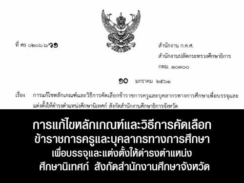 การแก้ไขหลักเกณฑ์และวิธีการคัดเลือกขรก.ครูและบุคลากรทางการศึกษาเพื่อบรรจุและแต่งตั้งฯ "ศึกษานิเทศก์ สังกัดสำนักงานศึกษาจังหวัด"