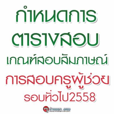 "กำหนดการ/ตารางสอบ/เกณฑ์สอบสัมภาษณ์" สอบครูผู้ช่วย รอบทั่วไป ปีพ.ศ.2558