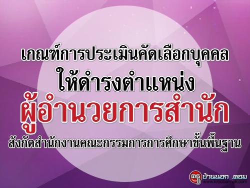 เกณฑ์การประเมินคัดเลือกบุคคลให้ดำรงตำแหน่งผู้อำนวยการสำนัก สังกัดสำนักงานคณะกรรมการการศึกษาขั้นพื้นฐาน