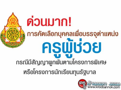 ด่วนมาก! การคัดเลือกบุคคลเพื่อบรรจุและแต่งตั้งเข้ารับราชการครูฯ ตำแหน่งครูผู้ช่วย กรณีมีสัญญาผูกพันตามโครงการพิเศษหรือโครงการนักเรียนทุนรัฐบาล