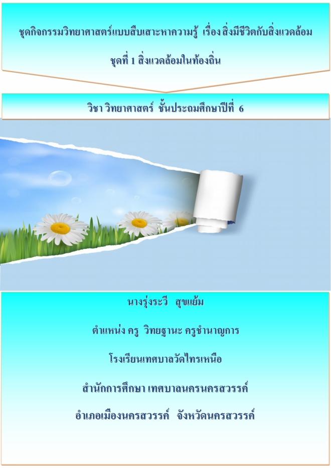 ชุดกิจกรรมวิทยาศาสตร์แบบสืบเสาะหาความรู้ เรื่อง สิ่งมีชีวิตกับสิ่งแวดล้อม ผลงานครูรุ่งระวี สุขแย้ม