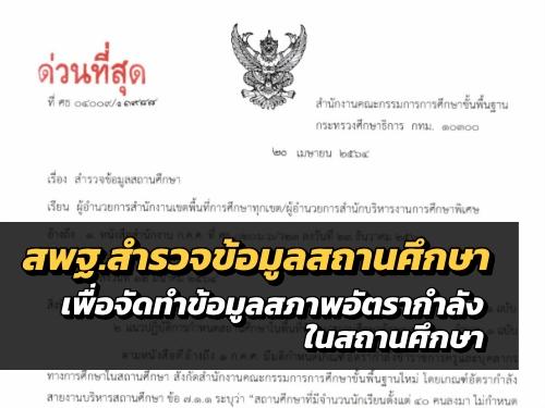 สพฐ.สำรวจข้อมูลสถานศึกษา เพื่อจัดทำข้อมูลสภาพอัตรากำลังในสถานศึกษา