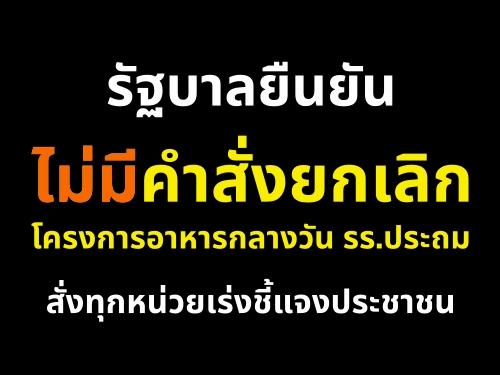 รัฐบาลยืนยันไม่มีคำสั่งยกเลิกโครงการอาหารกลางวัน รร.ประถม สั่งทุกหน่วยเร่งชี้แจงประชาชน