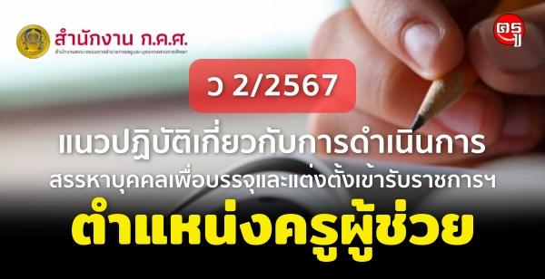 ว 2/2567 แนวปฏิบัติเกี่ยวกับการดำเนินการสรรหาบุคคลเพื่อบรรจุและแต่งตั้งเข้ารับราชการเป็นข้าราชการครูและบุคลากรทางการศึกษา ตำแหน่งครูผู้ช่วย