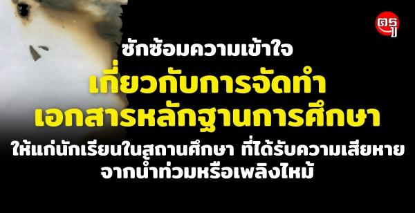 ซักซ้อมความเข้าใจเกี่ยวกับการจัดทำเอกสารหลักฐานการศึกษาให้แก่นักเรียนในสถานศึกษา ที่ได้รับความเสียหายจากน้ำท่วมหรือเพลิงไหม้