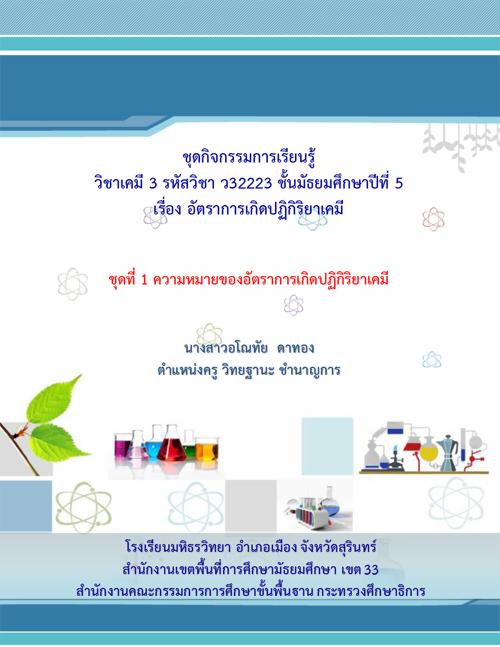 ชุดกิจกรรมการเรียนรู้ เรื่อง อัตราการเกิดปฏิกิริยาเคมี ผลงานครูอโณทัย ดาทอง