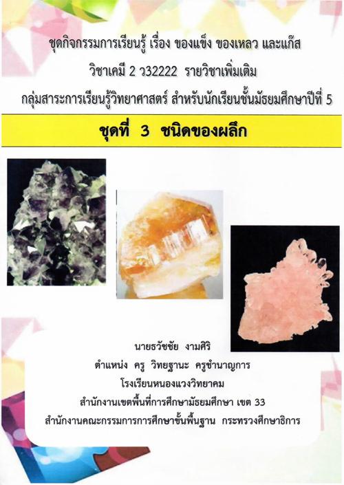 ชุดกิจกรรมการเรียนรู้ เรื่อง ของแข็ง ของเหลว และแก๊ส วิชาเคมี 2 ผลงานครูธวัชชัย งามศิริ