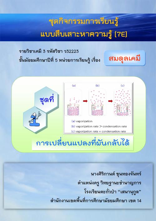 ชุดกิจกรรมการเรียนรู้แบบสืบเสาะหาความรู้ (7E) รายวิชาเคมี 3 เรื่อง สมดุลเคมี ผลงานครูศิริกานต์ ขุนทองจันทร์