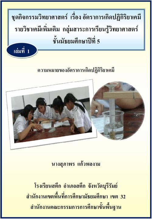 ชุดกิจกรรมวิทยาศาสตร์ เล่มที่ 1 เรื่อง ความหมายของอัตราการเกิดปฏิกิริยาเคมี ผลงานครูสุภาพร แก้วพลงาม
