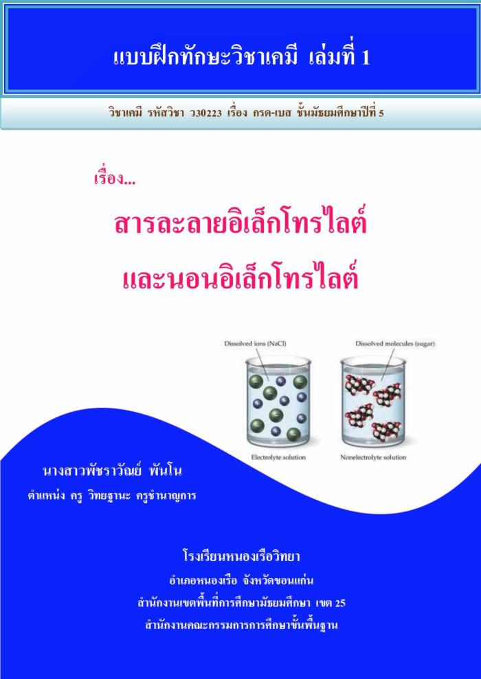 แบบฝึกทักษะวิชาเคมี เล่มที่ 1 สารละลายอิเล็กโทรไลต์ และนอนอิเล็กโทรไลต์ ผลงานครูพัชราวัณย์ พันโน
