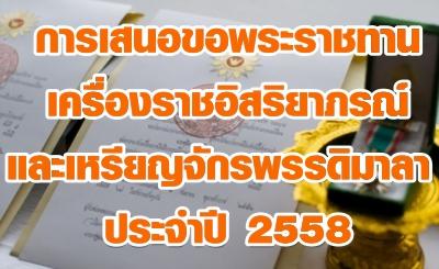 การเสนอขอพระราชทานเครื่องราชอิสริยาภรณ์และเหรียญจักรพรรดิมาลา ประจำปี 2558