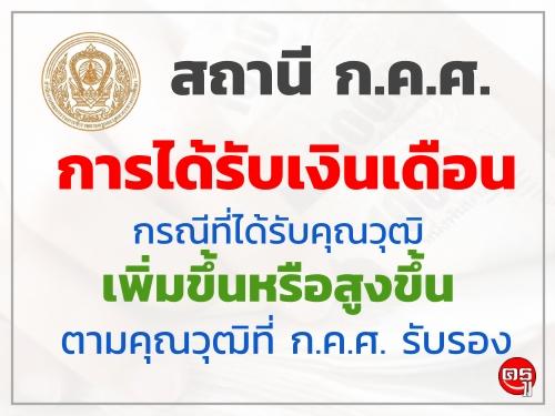 สถานี ก.ค.ศ. การได้รับเงินเดือนกรณีที่ได้รับคุณวุฒิเพิ่มขึ้นหรือสูงขึ้นตามคุณวุฒิที่ ก.ค.ศ. รับรอง