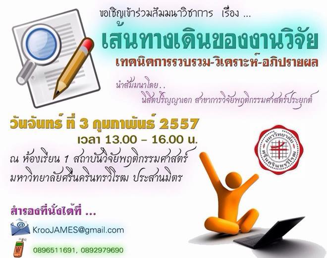 ขอเชิญเข้าร่วมสัมมนาวิชาการ "เส้นทางเดินของนักวิจัย" เทคนิคการรวบรวม-วิเคราะห์-อภิปรายผล