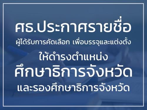 ศธ.ประกาศรายชื่อผู้ได้รับการคัดเลือก เพื่อบรรจุและแต่งตั้งให้ดำรงตำแหน่ง ศึกษาธิการจังหวัด และรองศึกษาธิการจังหวัด