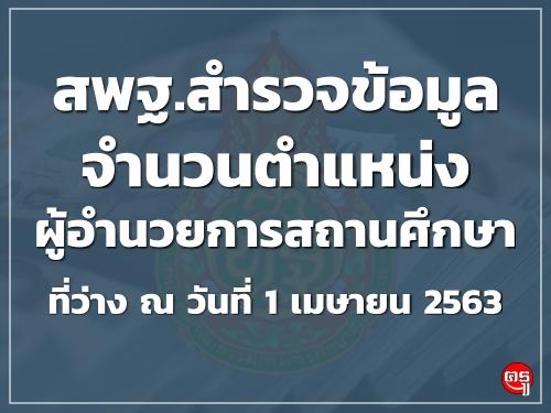 สพฐ.สำรวจข้อมูลจำนวนตำแหน่งผู้อำนวยการสถานศึกษาที่ว่าง ณ วันที่ 1 เมษายน 2563