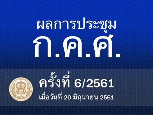 ผลการประชุม ก.ค.ศ. ครั้งที่ 6/2561 เมื่อวันที่ 20 มิถุนายน 2561
