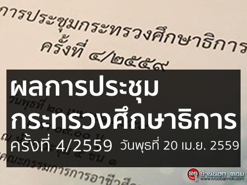 ผลการประชุมกระทรวงศึกษาธิการ 4/2559 เมื่อวันพุธที่ 20 เมษายน 2559