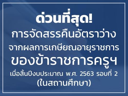 การจัดสรรคืนอัตราว่างจากผลการเกษียณอายุราชการ ของข้าราชการครูฯ เมื่อสิ้นปีงบประมาณ พ.ศ. 2563 รอบที่ 2 (ในสถานศึกษา)