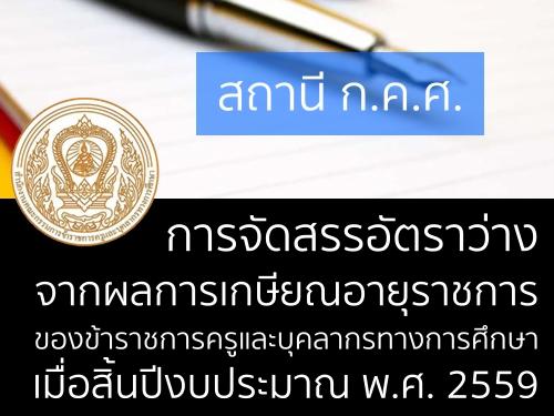 ก.ค.ศ.อนุมัติจัดสรรอัตราว่างจากผลการเกษียณอายุราชการของข้าราชการครูและบุคลากรทางการศึกษา เมื่อสิ้นปีงบประมาณ พ.ศ. 2559 จำนวน 23,429 อัตรา