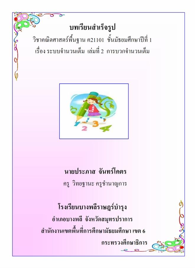 บทเรียนสำเร็จรูป คณิตศาสตร์ ม.1 เรื่อง ระบบจำนวนเต็ม ผลงานครูประภาส จันทร์โคตร