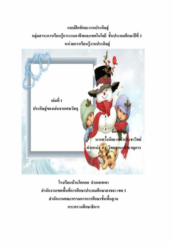 แบบฝึกทักษะงานประดิษฐ์ ม.3 ประดิษฐ์ของเล่นจากเศษวัสดุ ผลงานครูพวงน้อย เหล่าประชาวิทย์