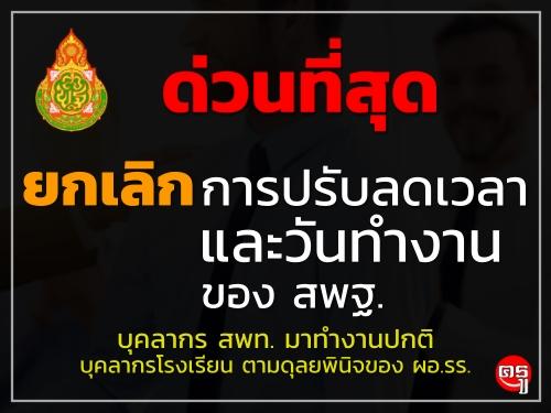 ด่วนที่สุด ยกเลิกการปรับลดเวลาและวันทำงานของสำนักงานคณะกรรมการการศึกษาขั้นพื้นฐาน