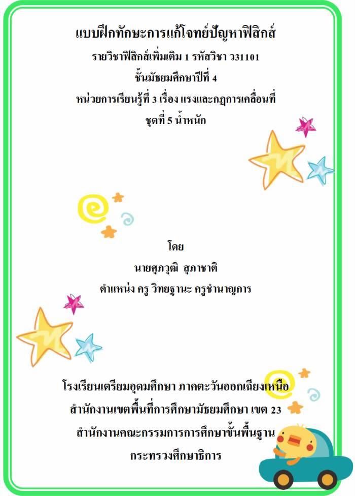แบบฝึกทักษะการแก้โจทย์ปัญหาฟิสิกส์ เรื่องแรงและกฎการเคลื่อนที่ ผลงานครูณัฐพล พรมลี