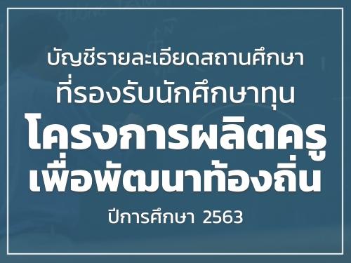 บัญชีรายละเอียดสถานศึกษาที่รองรับนักศึกษาทุนโครงการผลิตครูเพื่อพัฒนาท้องถิ่น ปีการศึกษา 2563