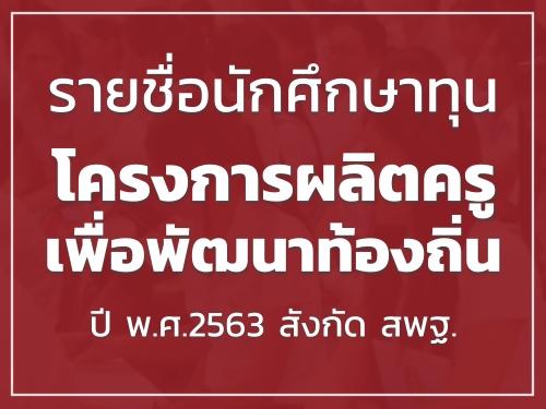 รายชื่อนักศึกษาทุนโครงการผลิตครูเพื่อพัฒนาท้องถิ่น ปี พ.ศ.2563 สังกัด สพฐ.