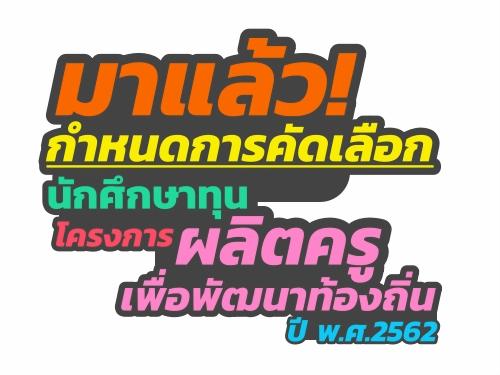 ประกาศรายชื่อผู้ผ่านการคัดเลือกเข้าร่วมโครงการทุนโครงการผลิตครูเพื่อพัฒนาท้องถิ่น ปี พ.ศ. 2562