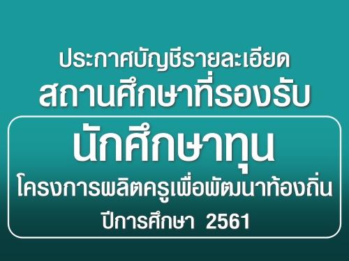 ประกาศบัญชีรายละเอียดสถานศึกษาที่รองรับนักศึกษาทุนโครงการผลิตครูเพื่อพัฒนาท้องถิ่น ปีการศึกษา 2561