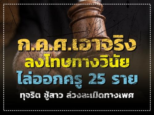 ก.ค.ศ.เอาจริง ลงโทษทางวินัย ไล่ออกครู25 ราย ทุจริต ชู้สาว ล่วงละเมิดทางเพศ
