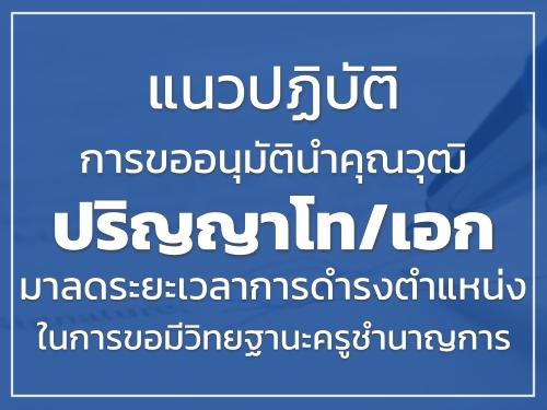 แนวปฏิบัติการขออนุมัตินำคุณวุฒิในระดับปริญญาโทหรือปริญญาเอกมาลดระยะเวลาการดำรงตำแหน่ง ในการขอมีวิทยฐานะครูชำนาญการ