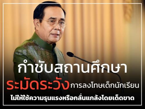 นายกรัฐมนตรีกำชับสถานศึกษาระมัดระวังการลงโทษเด็กนักเรียน การรับน้อง ไม่ให้ใช้ความรุนแรงหรือกลั่นแกล้งโดยเด็ดขาด