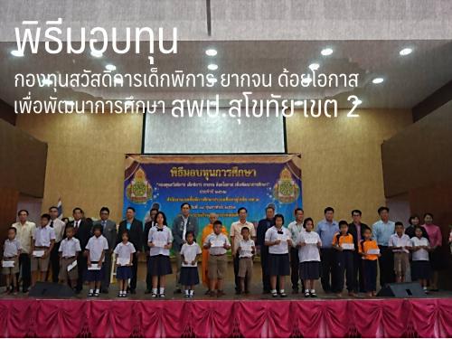 พิธีมอบทุน กองทุนสวัสดิการเด็กพิการ ยากจน ด้อยโอกาส เพื่อพัฒนาการศึกษา สพป.สุโขทัย เขต 2