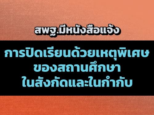 สพฐ.มีหนังสือแจ้งการปิดเรียนด้วยเหตุพิเศษของสถานศึกษาในสังกัดและในกำกับ
