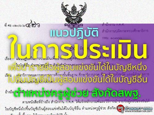 แนวปฏิบัติในการประเมินเพื่อนำรายชื่อผู้สอบแข่งขันได้ในบัญชีหนึ่งไปขึ้นบัญชีเป็นผู้สอบแข่งขันได้ในบัญชีอื่น ตำแหน่งครูผู้ช่วย สังกัดสพฐ.