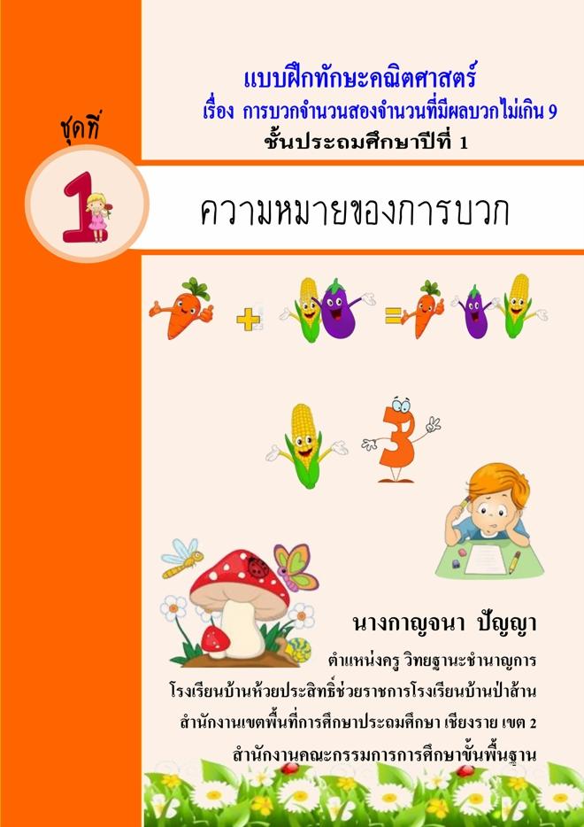 แบบฝึกทักษะคณิตศาสตร์เรื่อง การบวกจำนวนสองจำนวนที่มีผลบวกไม่เกิน 9 ผลงานครูกาญจนา ปัญญา