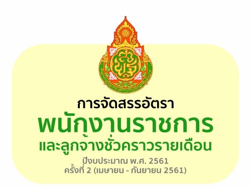 การจัดสรรอัตราพนักงานราชการและลูกจ้างชั่วคราวรายเดือน ปีงบประมาณ พ.ศ. 2561 ครั้งที่ 2 (เมษายน - กันยายน 2561)
