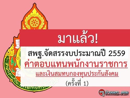 สพฐ.จัดสรรงบประมาณปี 2559 ค่าตอบแทนพนักงานราชการ และเงินสมทบกองทุนประกันสังคม (ครั้งที่ 1)