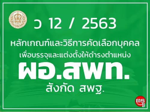 12/2563 หลักเกณฑ์และวิธีการคัดเลือกบุคคลเพื่อบรรจุและแต่งตั้งให้ดำรงตำแหน่งผู้อำนวยการสำนักงานเขตพื้นที่การศึกษา สังกัด สพฐ.