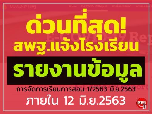 ด่วนที่สุด! สพฐ.แจ้งโรงเรียนรายงานข้อมูลการจัดการเรียนการสอน 1/2563 รายงานข้อมูลภายใน 12 มิ.ย.2563