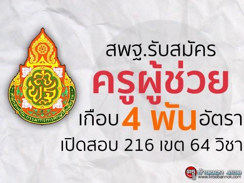 สพฐ.รับสมัครครูผู้ช่วย เกือบ 4 พันอัตรา เปิดสอบ 216 เขต 64 วิชา
