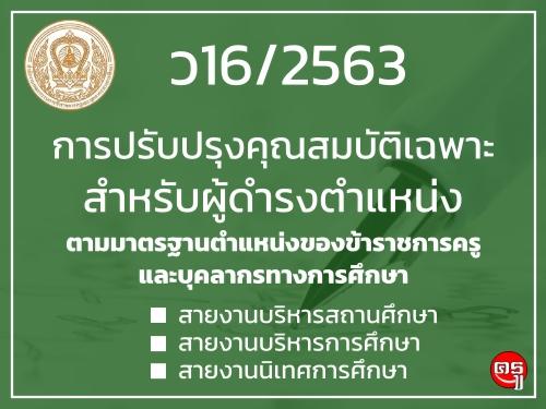 16/2563 การปรับปรุงคุณสมบัติเฉพาะสำหรับผู้ดำรงตำแหน่ง ตามมาตรฐานตำแหน่งของข้าราชการครูฯ สายงานบริหารสถานศึกษา สายงานบริหารการศึกษา และสายงานนิเทศฯ