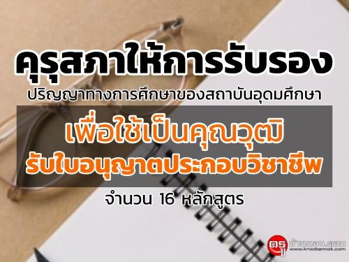 คุรุสภาให้การรับรองปริญญาทางการศึกษาของสถาบันอุดมศึกษา เพื่อใช้เป็นคุณวุฒิรับใบอนุญาตประกอบวิชาชีพ จำนวน 16 หลักสูตร
