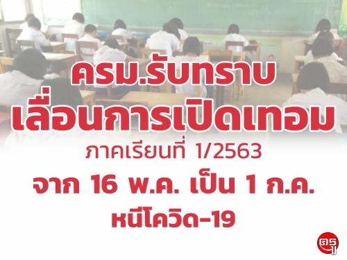 ครม.รับทราบให้สถานศึกษาเลื่อนการเปิดภาคเรียนที่ 1/2563 จาก 16 พ.ค. เป็น 1 ก.ค.